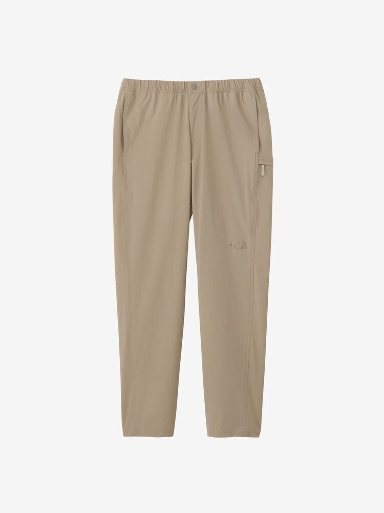 一部リサイクルナイロンを使用したリップストップ生地はストレッチ性と適度なハリ感があり、はっ水加工を施しているため多少の雨は弾きます。脚さばきが快適なテーパードシルエットで、左サイドには地図が入るサイズの縦長のポケットを配置。ウエストはサイズ調節のしやすいスピンドル仕様。UVケア(UPF15-30、紫外線カット率85%以上)機能付き。